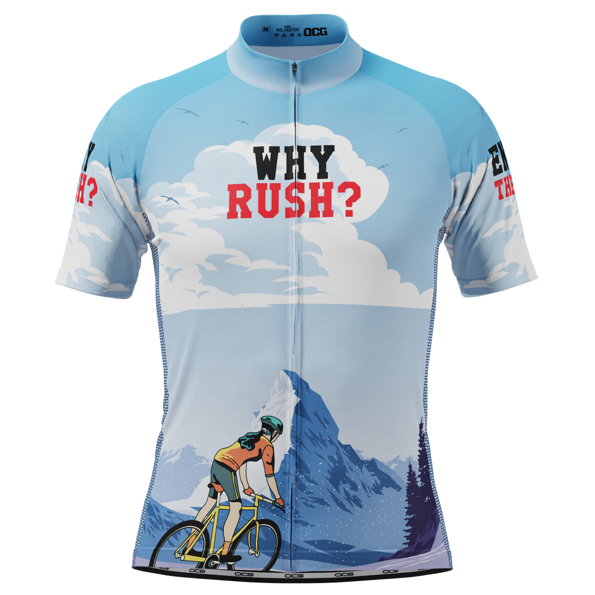 OCG presents the Men's Why Rush Short Sleeve Cycling Jersey so you can roll up to your next ride with confidence and style.