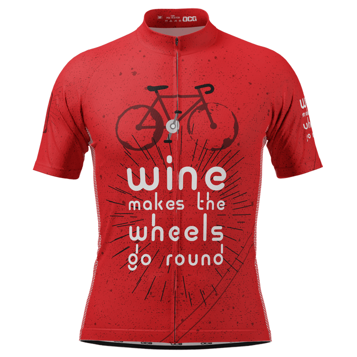OCG and OCG Originals have come together to bring the Men's Wine Makes the Wheels Go Round Short Sleeve Cycling Jersey so you can roll up to your next ride with confidence and style.