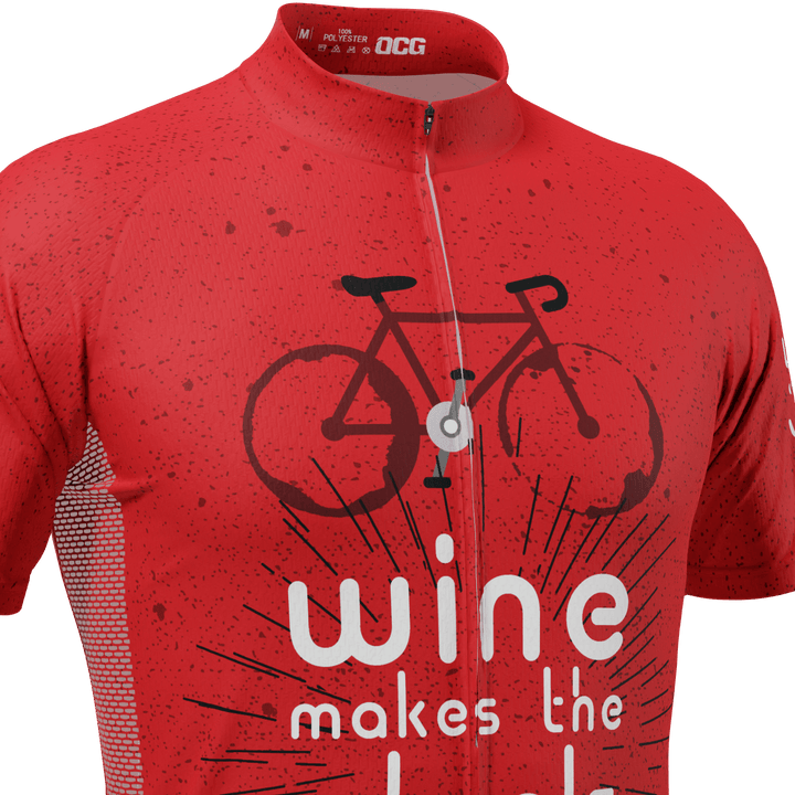 Men's Wine Makes the Wheels Go Round Short Sleeve Cycling Jersey Details