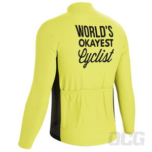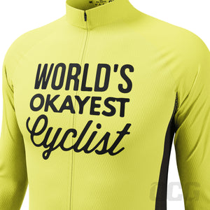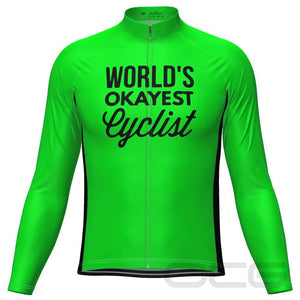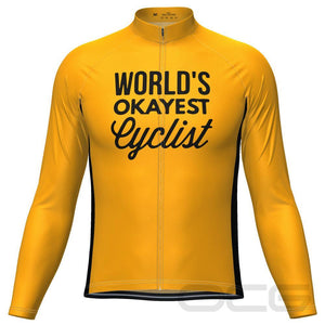 Whether you want to not feel the bite of the winter chill, or you just need some extra protection with a light-weight long-sleeve jersey, this Men's Worlds Okayest Cyclist Long Sleeve Cycling Jersey will do the trick.