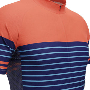 Keep it classy and comfortable with this Men's Orange Blue Stripe Short Sleeve Cycling Kit.