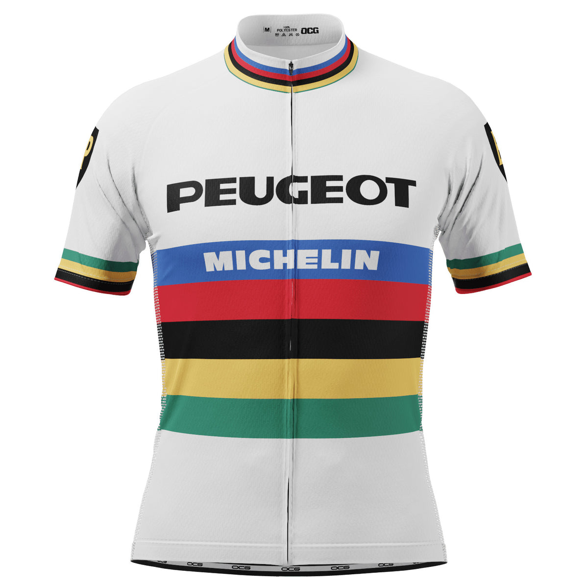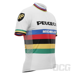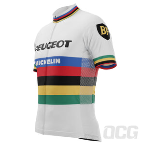 Inspired by the French Peugeot cycling teams of the 1960s, 70s, and 80s comes the Peugeot BP Michelin Retro Classic Short Sleeve Cycling Jersey.