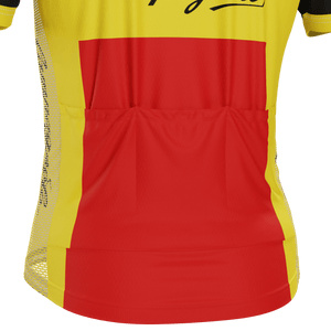 This men's short-sleeved cycling shirt features a moisture-wicking LEMBO 140 GSM polyester, cooling 110GSM mesh side panels, and reinforced stitched back pockets.