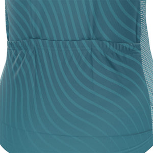 The Women's Four Seasons Winter Short Sleeve Cycling Kit features a moisture-wicking LEMBO 140 GSM polyester, cooling 110GSM mesh side panels, and reinforced stitched back pockets.