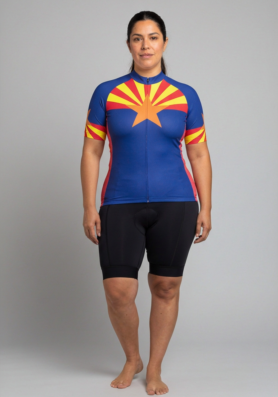 You could pay double the price for an ill-fitting men's jersey elsewhere, or you could wear this Women's Arizona State Flag Short Sleeve Cycling Jersey that makes other cyclists take a second look, with the convenience of stitched back pockets and a women's specific cut.