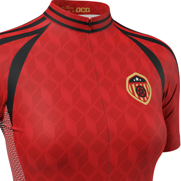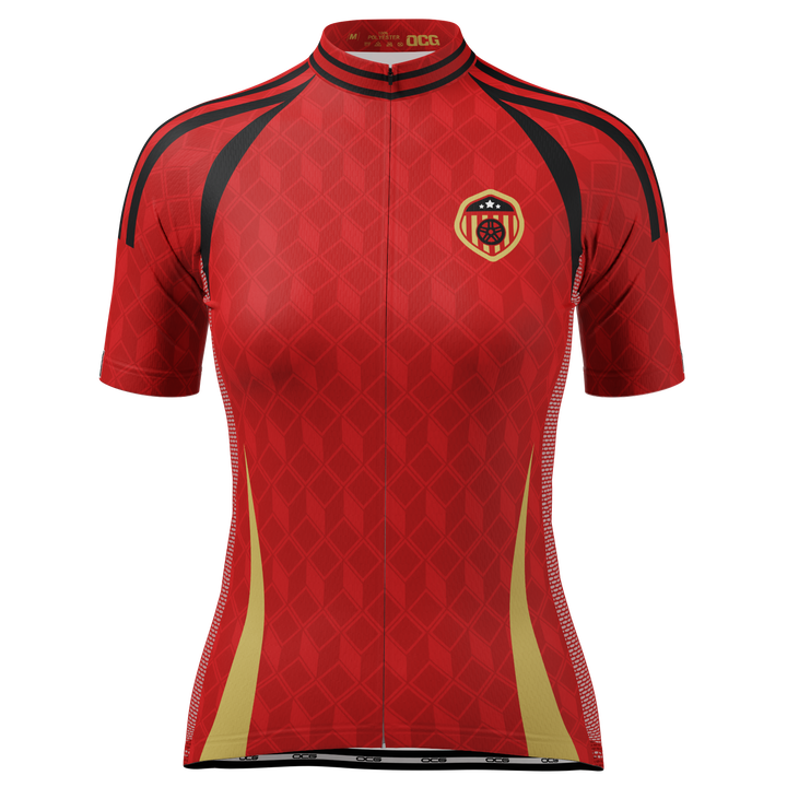 OCG presents the Women's Belgium Soccer Short Sleeve Cycling Jersey so you can roll up to your next ride in style and feel the comfort of a female cut jersey.