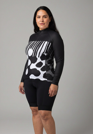 OCG and have come together to bring the Women's Big Leopard Spots & Stripes Long Sleeve Cycling Jersey to keep you warm and protected on your next ride.