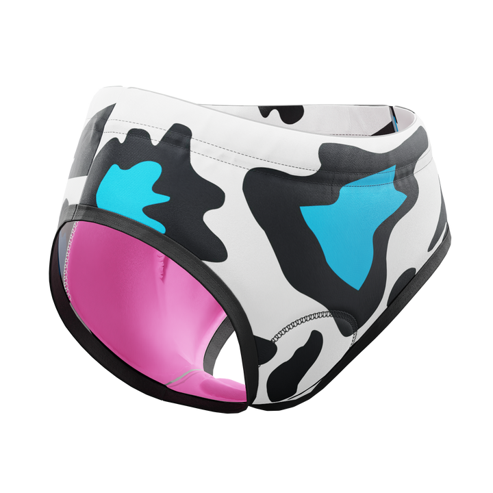 Ride in discrete comfort but know you are rocking some style underneath with these Women's Blue Cow Gel Padded Cycling Briefs.