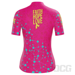 OCG and OCG Originals have come together to bring the Women's Breast Cancer Faith Hope Love Short Sleeve Cycling Jersey so you can roll up to your next ride in style and feel the comfort of a female cut jersey.