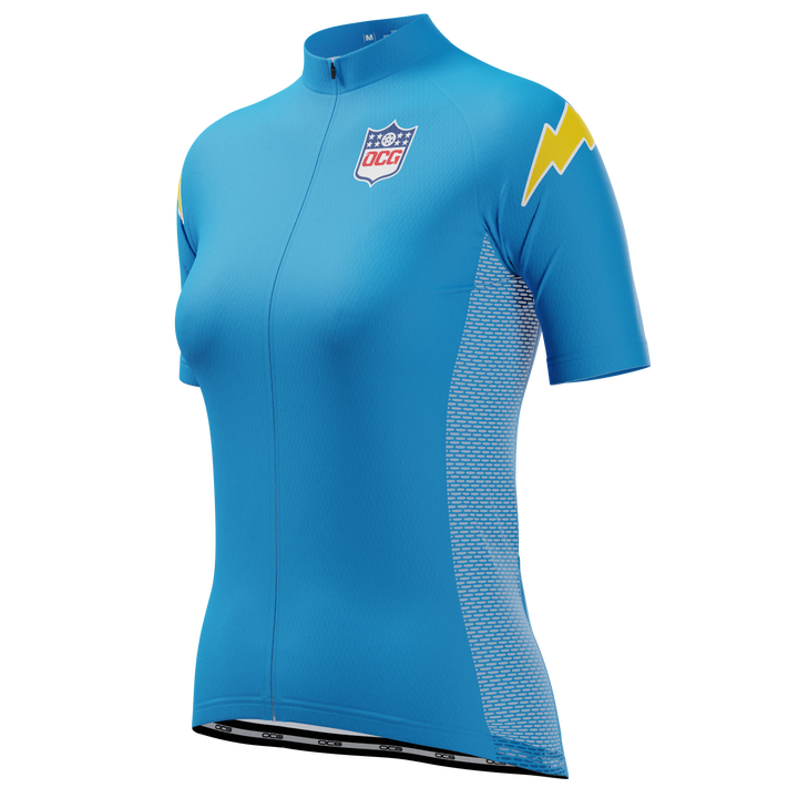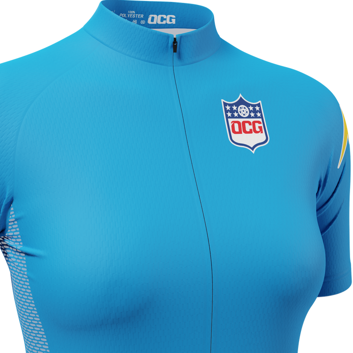 OCG and OCG Originals have come together to bring the Women's Charger Football Short Sleeve Cycling Jersey so you can roll up to your next ride in style and feel the comfort of a female cut jersey.