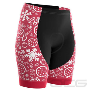 Women's Christmas Candy Pro-Band Cycling Shorts Features