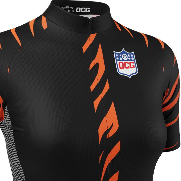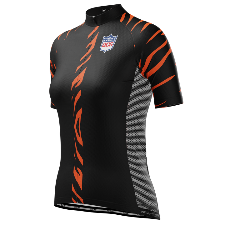 OCG presents the Women's Cincinatti Football Short Sleeve Cycling Jersey so you can roll up to your next ride in style and feel the comfort of a female cut jersey.