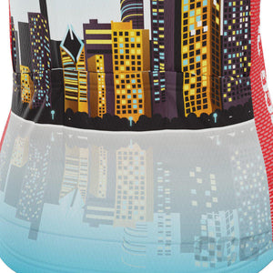 The Women's City of Chicago Short Sleeve Cycling Jersey features a moisture-wicking LEMBO 140 GSM polyester, cooling 110GSM mesh side panels, and reinforced stitched back pockets.
