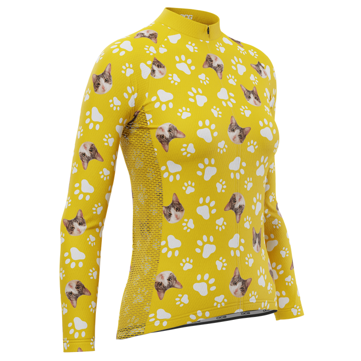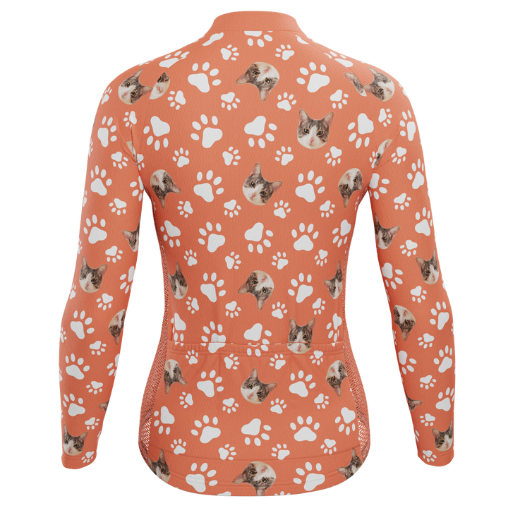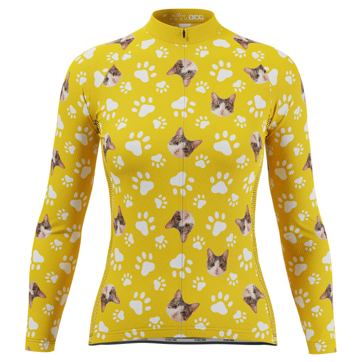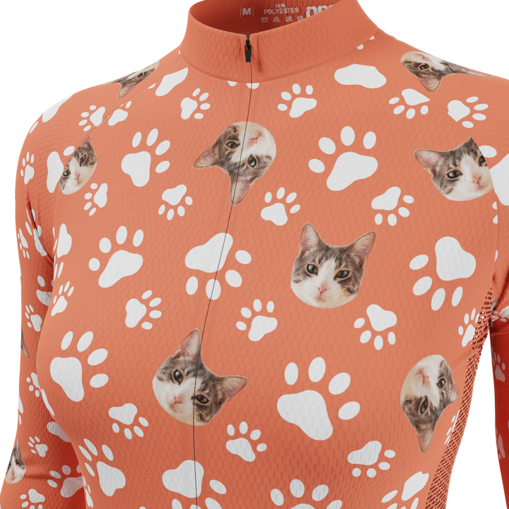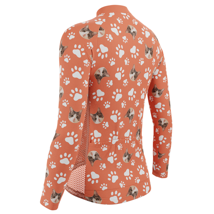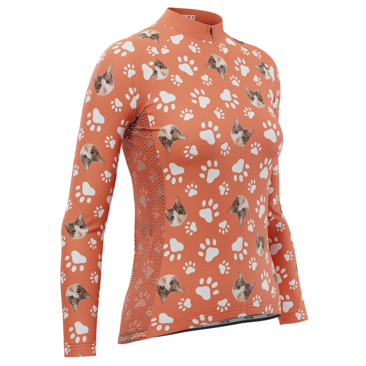 OCG presents the Women's Custom Pet Paws Design Personalized Long Sleeve Cycling Jersey to keep you warm and protected on your next ride.