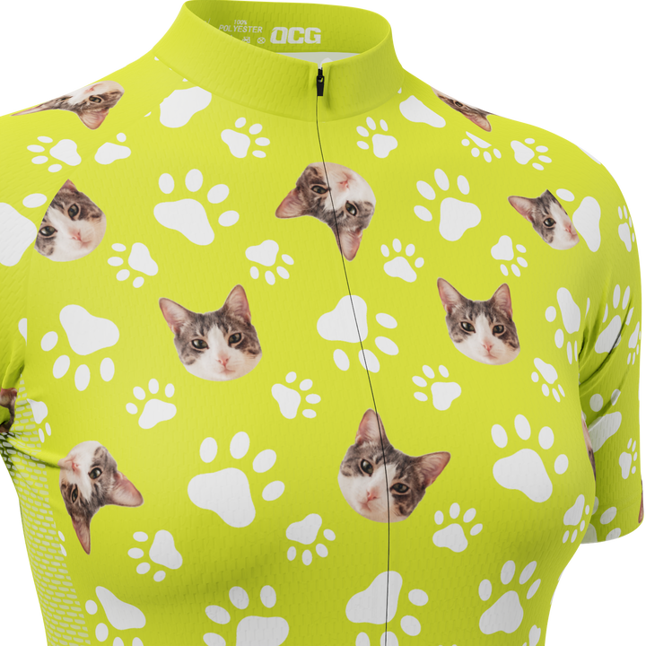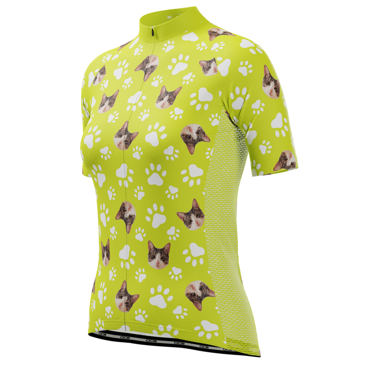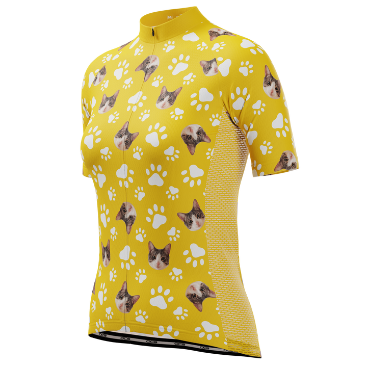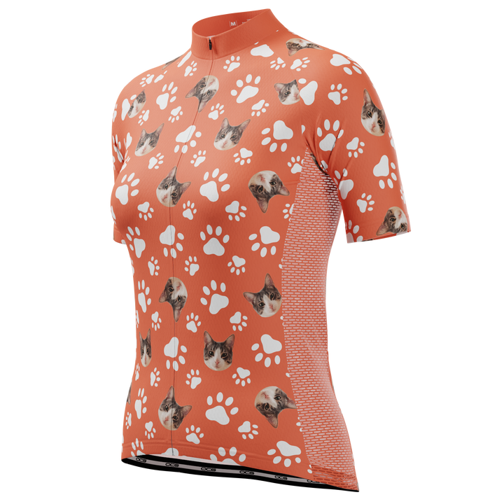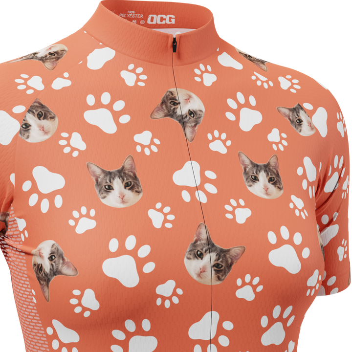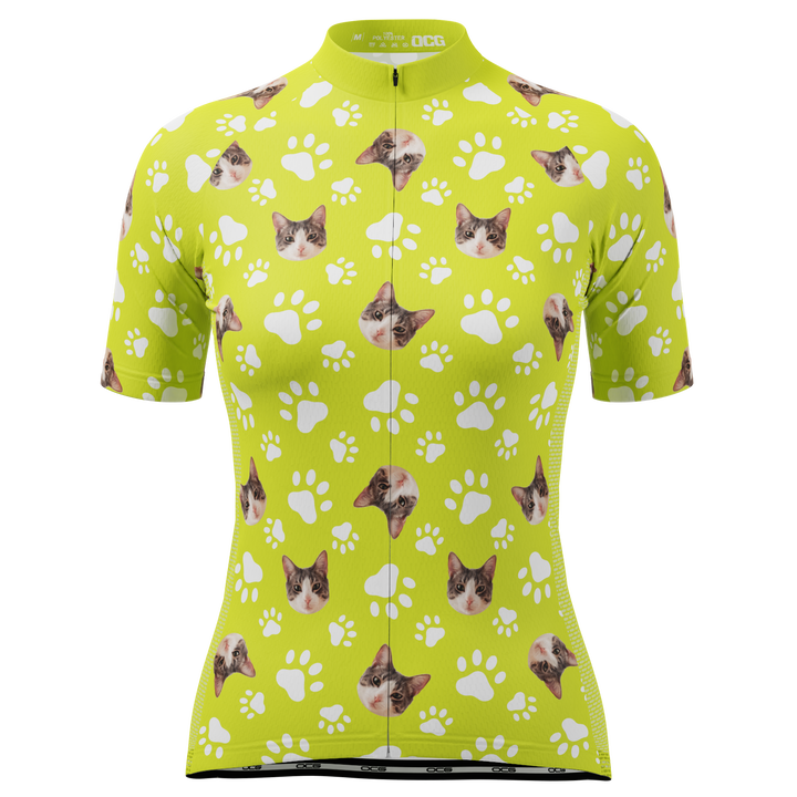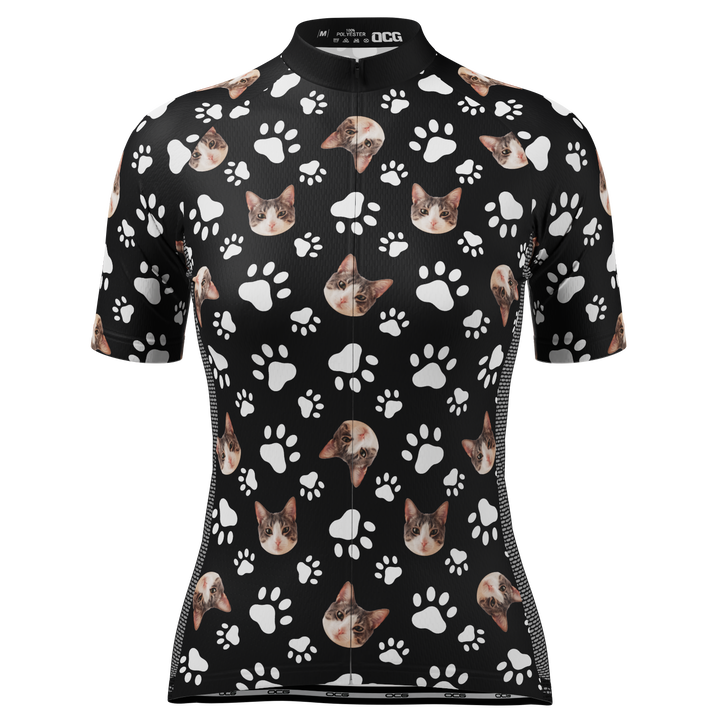 OCG presents the Women's Custom Pet Paws Design Personalized Short Sleeve Cycling Jersey so you can roll up to your next ride in style and feel the comfort of a female cut jersey.