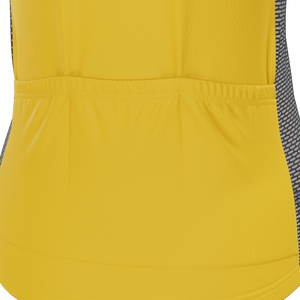 The Women's Duo Short Sleeve Cycling Jersey features a moisture-wicking LEMBO 140 GSM polyester, cooling 110GSM mesh side panels, and reinforced stitched back pockets.