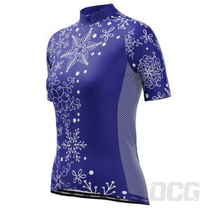 Women's Festive Snowflake Short Sleeve Cycling Jersey Details