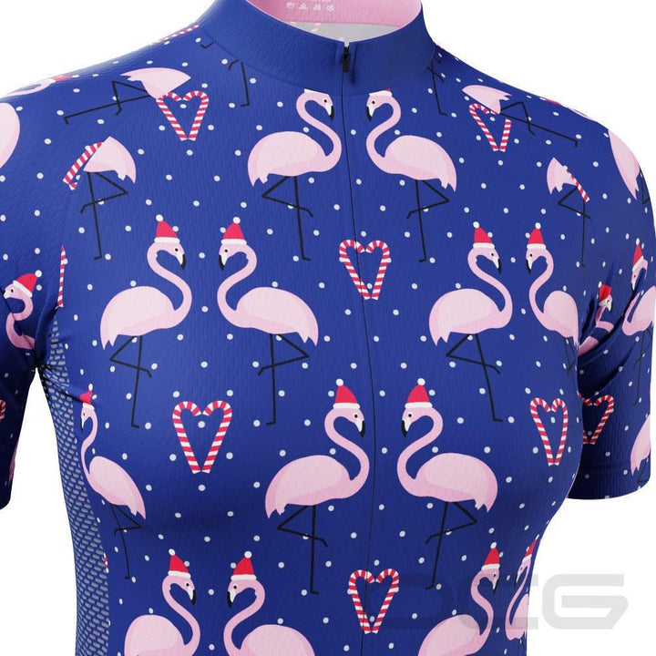 Women's Flamingo Santa Short Sleeve Cycling Jersey Details