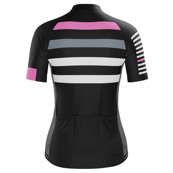 Women's Four Stripes with Pink Short Sleeve Cycling Jersey Details