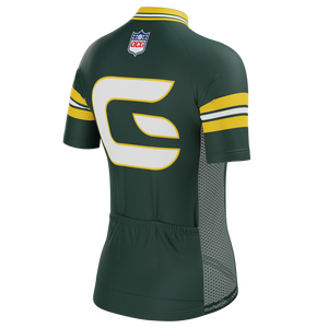 OCG and OCG Originals have come together to bring the Women's Green Bay Football Short Sleeve Cycling Jersey so you can roll up to your next ride in style and feel the comfort of a female cut jersey.
