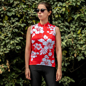 OCG Originals brings the Women's Hawaiian Aloha Floral Sleeveless Cycling Jersey for those summer rides with the comfort of a female cut sleeveless jersey.