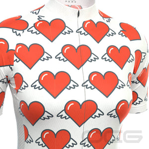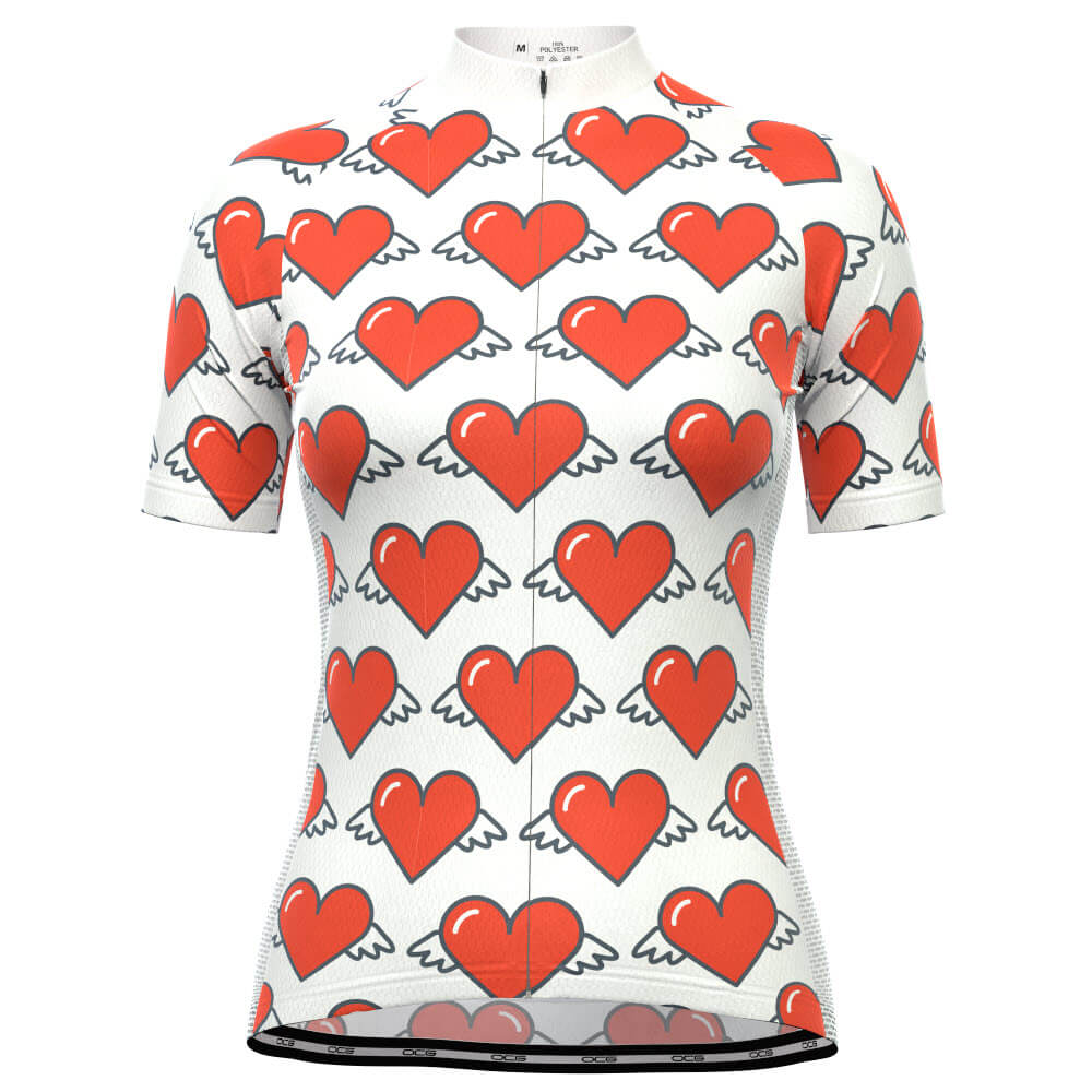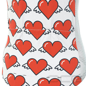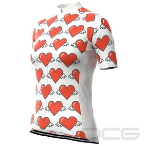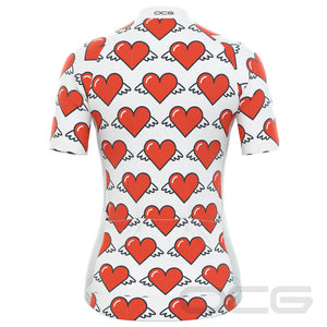 Designed here in the offices of OCG comes this unique Women's Heart Angels White Cycling Jersey made from high-quality, long-weave, Quick-Dry breathable polyester and cut for the women's body shape.