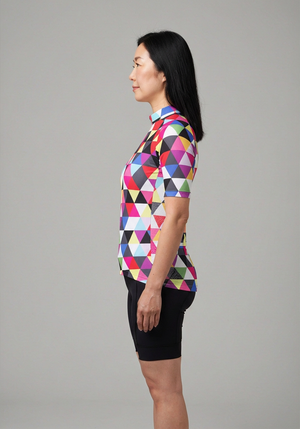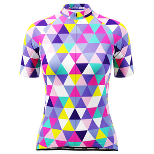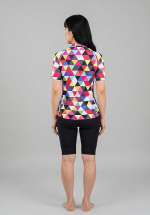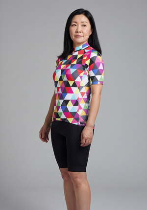 Women's High Viz Color Triangles Short Sleeve Cycling Jersey Details
