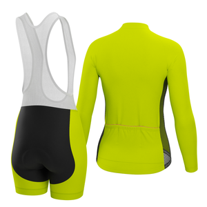 Women's High Viz With Black Accent 2 Piece Cycling Kit will keep you warm and protected on your next ride.
