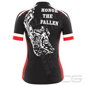 The Women's Honor the Fallen USA Flag Cycling Jersey lets you ride in style and feel the comfort of a jersey cut for the women's body shape.