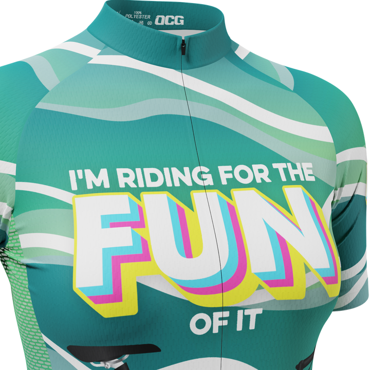 OCG and OCG Originals have come together to bring the Women's I'm Riding For The Fun Of It Short Sleeve Cycling Jersey so you can roll up to your next ride in style and feel the comfort of a female cut jersey.