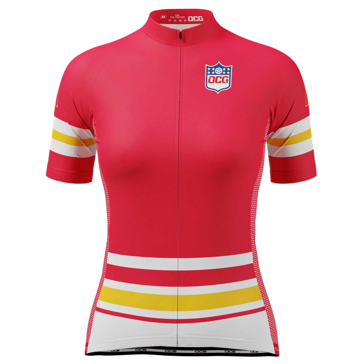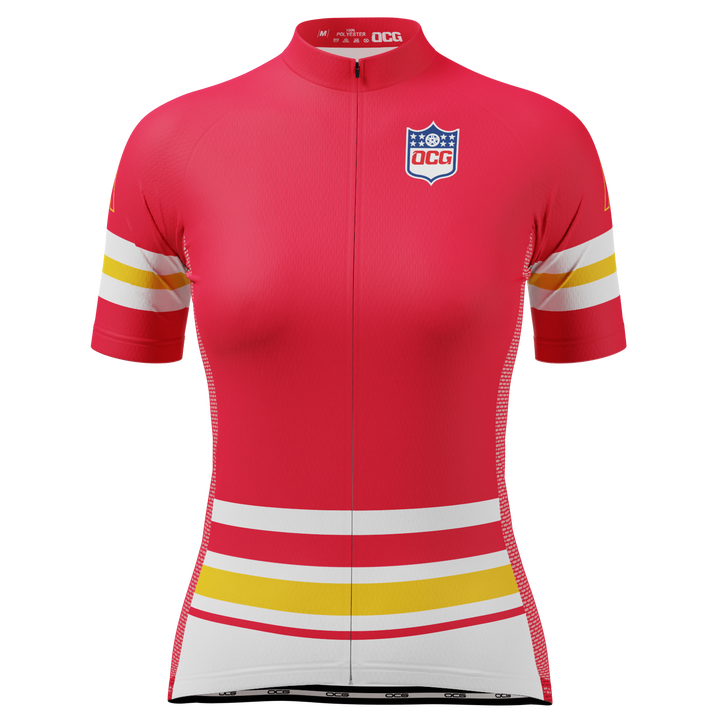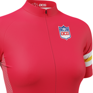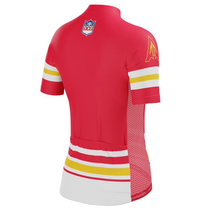 OCG presents the Women's Kansas Football Short Sleeve Cycling Jersey so you can roll up to your next ride in style and feel the comfort of a female cut jersey.