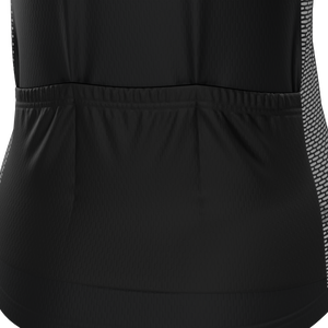 The Women's Las Vegas Football Short Sleeve Cycling Jersey features a moisture-wicking LEMBO 140 GSM polyester, cooling 110GSM mesh side panels, and reinforced stitched back pockets.