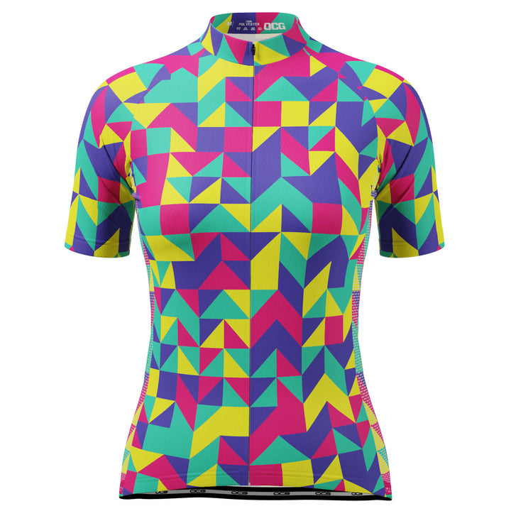 Women's Neon Geometry Short Sleeve Cycling Jersey Details