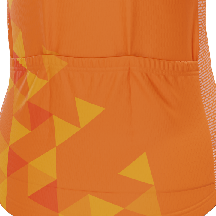 The Women's Netherlands Soccer Short Sleeve Cycling Jersey features a moisture-wicking LEMBO 140 GSM polyester, cooling 110GSM mesh side panels, and reinforced stitched back pockets.