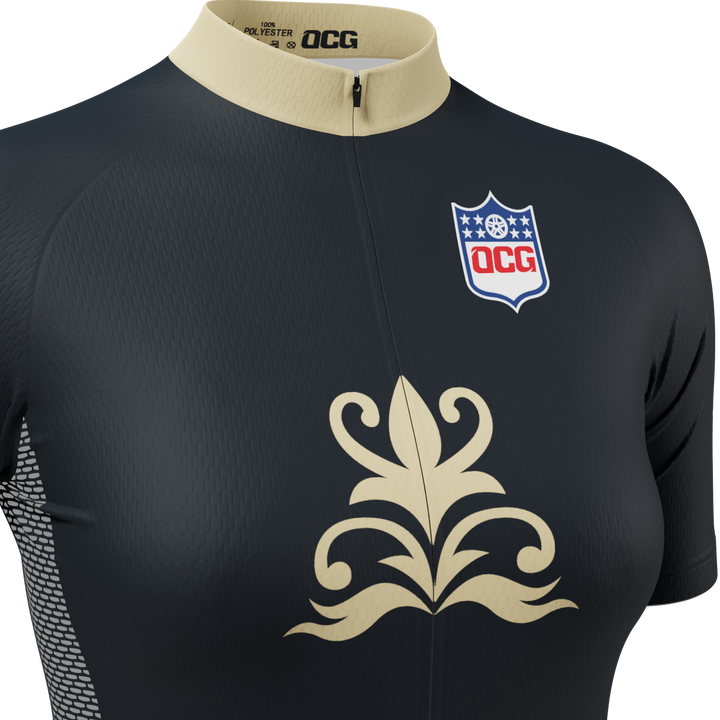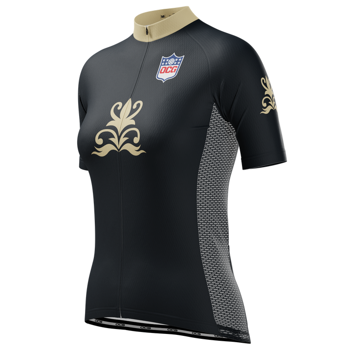 OCG and OCG Originals have come together to bring the Women's New Orleans Football Short Sleeve Cycling Jersey so you can roll up to your next ride in style and feel the comfort of a female cut jersey.