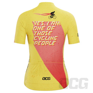 OCG and OCG Originals have come together to bring the Women's One of Those Cycling People Short Sleeve Cycling Jersey for you to ride in style and feel the comfort of a female cut jersey.