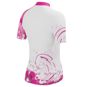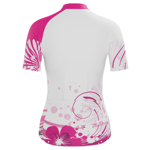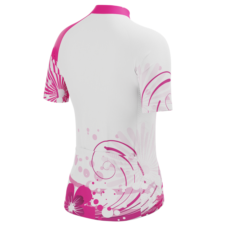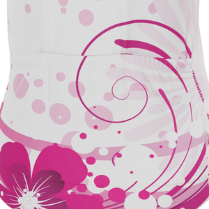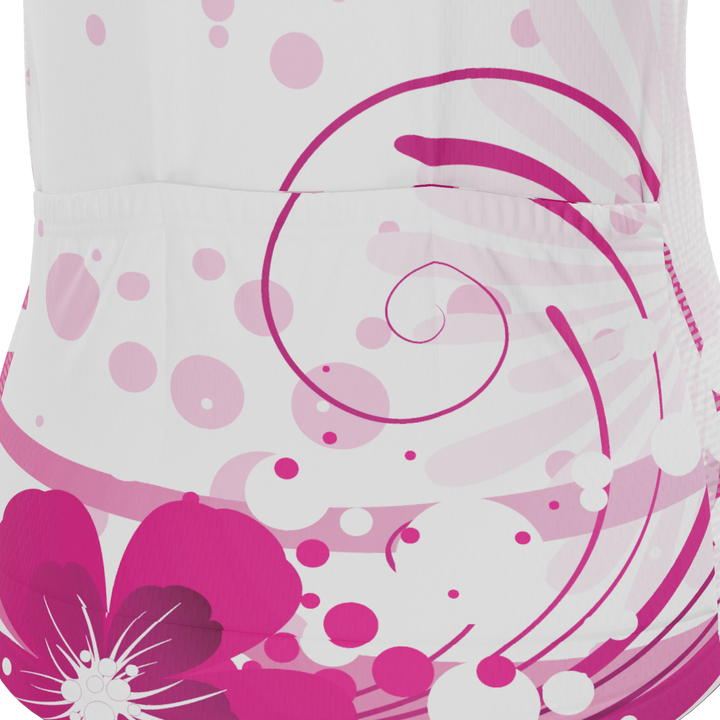 Women's Pink Floral Swirl Short Sleeve Cycling Jersey Details