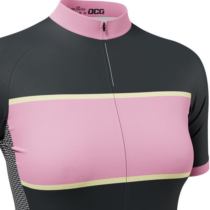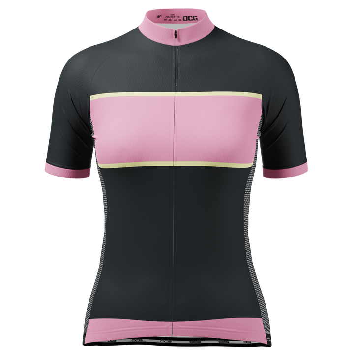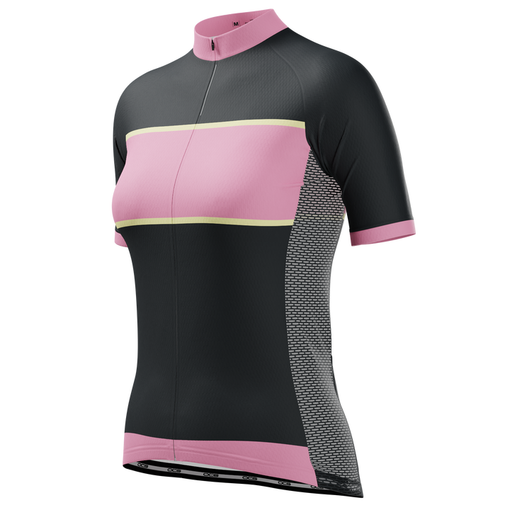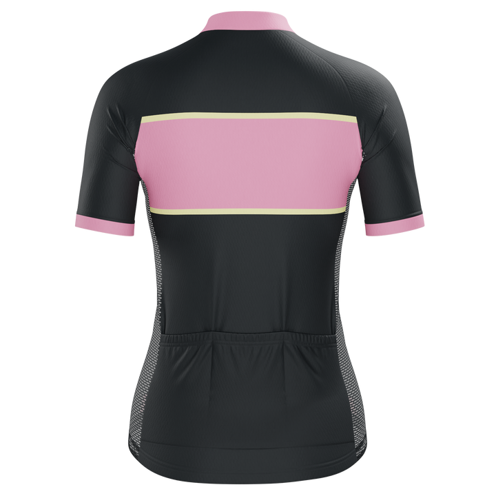 This Women's Pink Stripe Black Cycling Jersey is made from high-quality Quick-Dry breathable fabric with a hidden full-length zip and three reinforced back pockets.