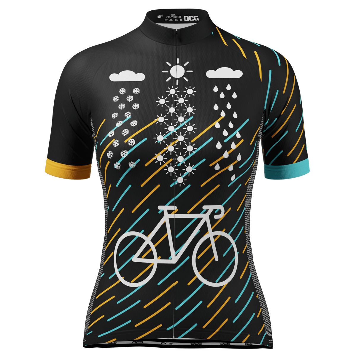 The Women's Rain Hail or Shine Short Sleeve Cycling Jersey lets you ride in style and feel the comfort of a jersey cut for the women's body shape.