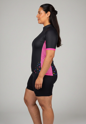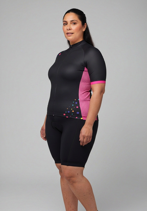 Women's Rainbow Polka Dots On Black Short Sleeve Cycling Jersey