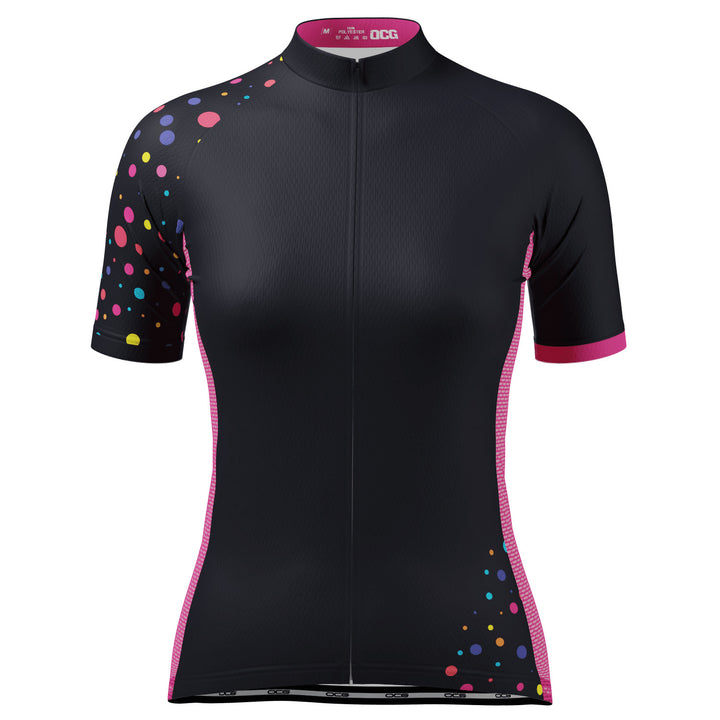 The design team here at OCG brings the Women's Rainbow Polka Dot Short Sleeve Cycling Jersey for you to ride in style and feel the comfort of a female cut jersey.