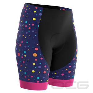 These Women's Rainbow Polka Dots on Blue Gel Padded Cycling Shorts is suited to all outfits and are made for comfort and style.
