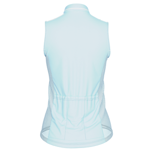 The Women's Retro Bianchi Sleeveless Cycling Jersey features a moisture-wicking LEMBO 140 GSM polyester, cooling 110GSM mesh side panels, and reinforced stitched back pockets.