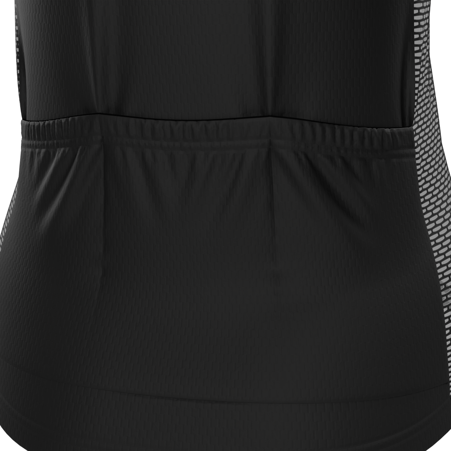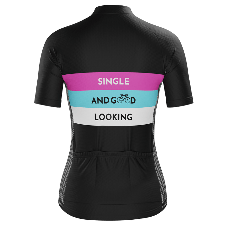 The Women's Single and Good Looking Short Sleeve Cycling Jersey features a moisture-wicking LEMBO 140 GSM polyester, cooling 110GSM mesh side panels, and reinforced stitched back pockets.