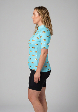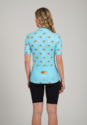 OCG and OCG Originals have come together to bring the Women's Sleeping Beagle Short Sleeve Cycling Jersey for you to ride in style and feel the comfort of a female cut jersey.