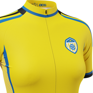 OCG presents the Women's Sweden Soccer Short Sleeve Cycling Jersey so you can roll up to your next ride in style and feel the comfort of a female cut jersey.