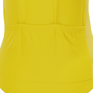 The Women's Sweden Soccer Short Sleeve Cycling Jersey features a moisture-wicking LEMBO 140 GSM polyester, cooling 110GSM mesh side panels, and reinforced stitched back pockets.