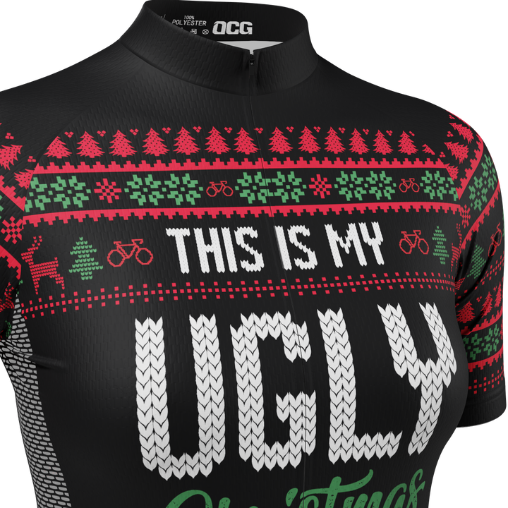 OCG presents the Women's This is my Ugly Christmas Sweater Short Sleeve Cycling Jersey so you can roll up to your next ride in style and feel the comfort of a female cut jersey.