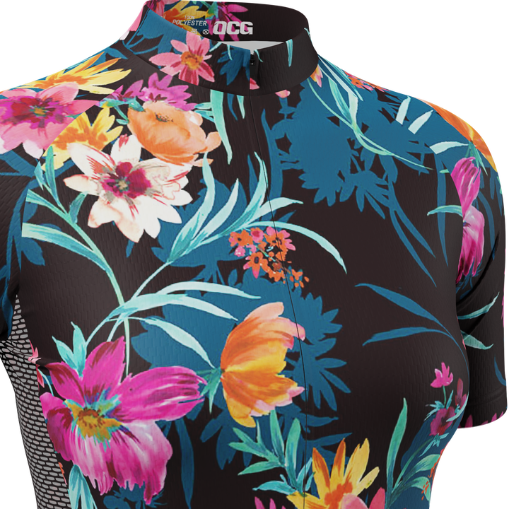 OCG and OCG Originals have come together to bring the Women's Tropical Bloom Short Sleeve Cycling Jersey so you can roll up to your next ride in style and feel the comfort of a female cut jersey.
