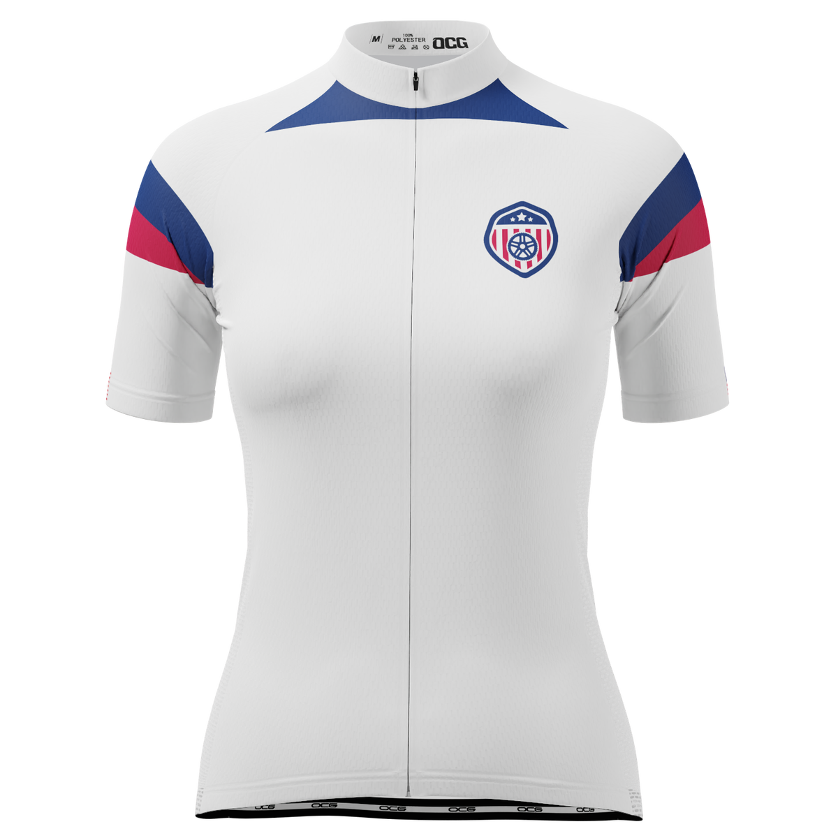 OCG presents the Women's USA Soccer Short Sleeve Cycling Jersey so you can roll up to your next ride in style and feel the comfort of a female cut jersey.